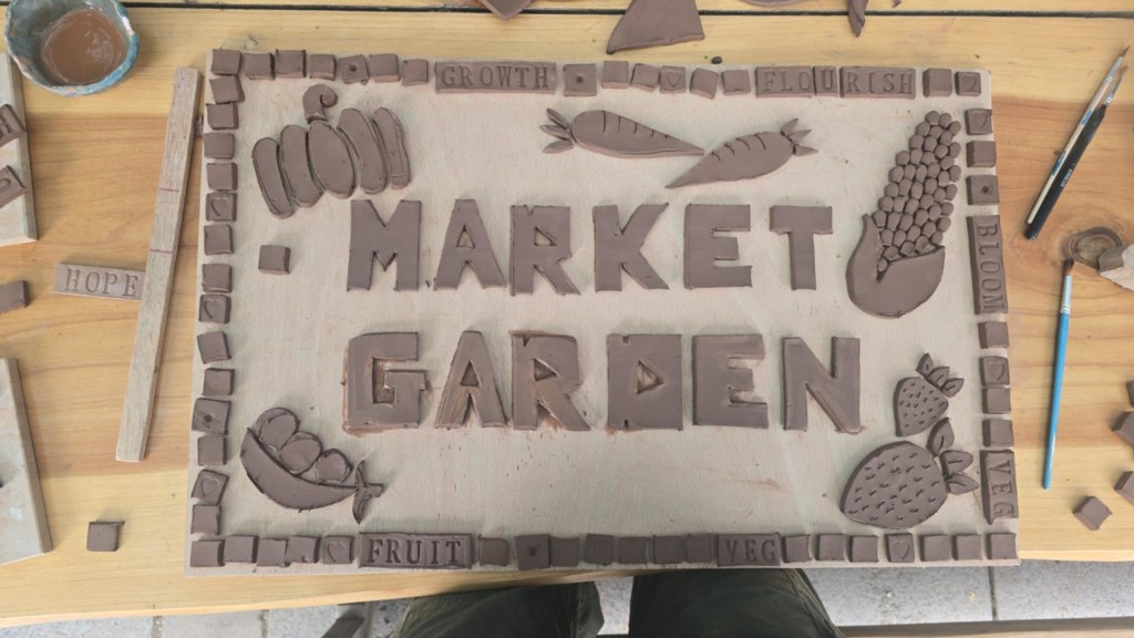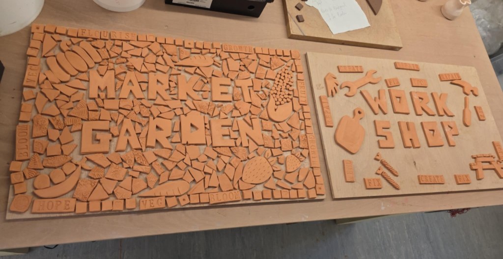 I’ve been helping out with putting all the tiles up and like all the achievements and stuff, like sort of adding to that really. Cooking … well, I’ve been doing all the lunches … Chantal’s potatoes. Nothing ever beats the first batch. Never applaud yourself for what you have done… I always realise that I’m always living in that moment, that something can be better, but I never like applaud myself for what I’ve done. Even getting back into work that time, like I was still climbing and climbing and climbing, but actually I’d just come out of prison and everyone knows everything. It’s all a façade almost. I never actually went ‘well done’ until it was all over and you never live in that moment, so I was like my potatoes just aren’t good enough because they were better last time … but it is nice because I’ve been living at a friend’s house, I don’t get to prepare like I would if I was at home. I’ve not been able to prepare food and stuff like that, so like making the salads from scratch, doing the potatoes from scratch, making everything from scratch, coleslaw from scratch, all different dressings, all that type of stuff, because I’m technically homeless, it’s that home vibe, so that’s really nice.