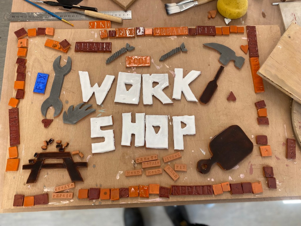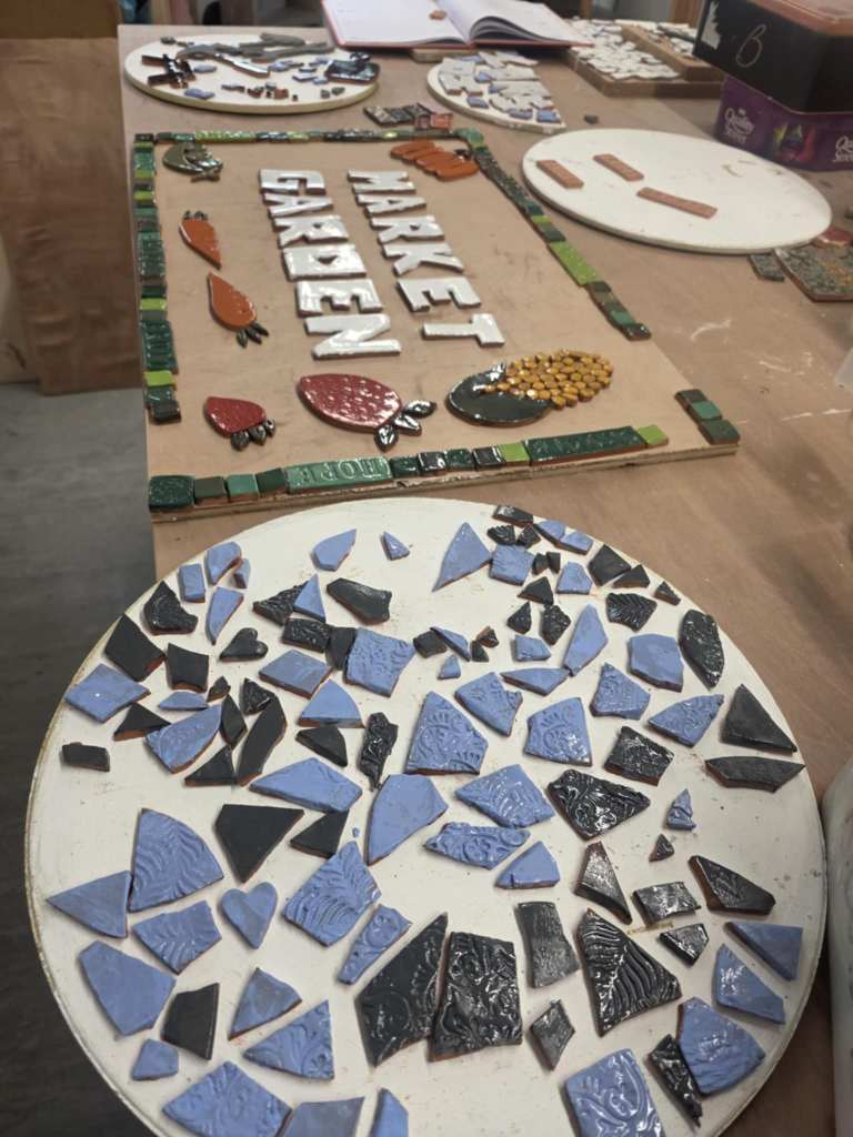 Coz obviously I’d gone from having a panic attack walking in here, to feeling like part of the furniture within the first day almost. That was really nice. I think it was … I don’t know what I did the first day, I think it was my tile, and everyone was sort of coming up and going that’s brilliant. So it was just chatty with everyone straightaway. Yeah, it was almost like … it was just fluid, so there was no like awkward silences or like this is weird, you know, like it always is in college, you start like a new course and you’re like sitting next to someone … oh, fucking hell, this is shit. But I think everyone’s sort of in the same boat here as well, and you don’t know who works here at first and who doesn’t, which is quite funny. Graham’s lovely coz he’s happy and he’s always wandering around. He’s sort of in the middle there, when I’m at pottery, yeah, it was really nice.”