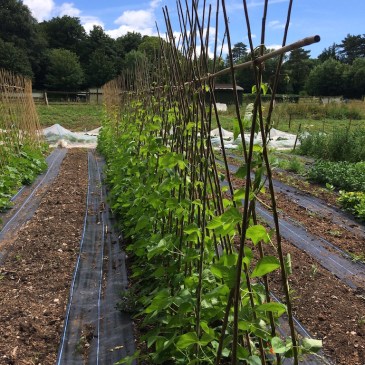 Brett says: “I’ve been helping Mon in the garden really, because it’s all sort of systems go there, in the garden, ’cos I think with sort of May and June it is sort of growing season. We’ve just been finishing all the beds in the new field and putting Mypex in-between, Mypex is like underlay … More Brett and Simon: “Mon’s team green…”